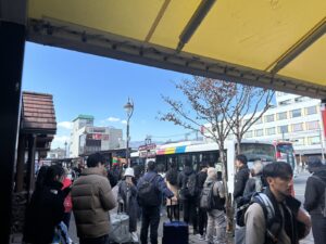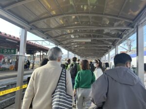 河口湖駅も観光客であふれている