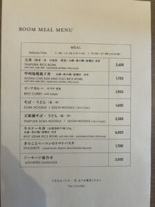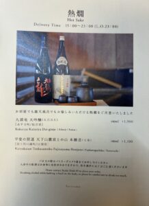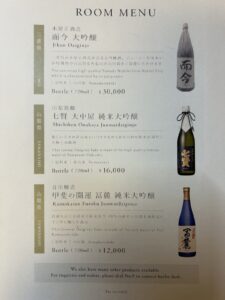 熱燗、日本酒のルームサービスもあります。