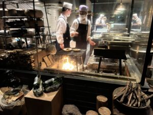 夕食は、富士山の溶岩で仕上げるお料理や