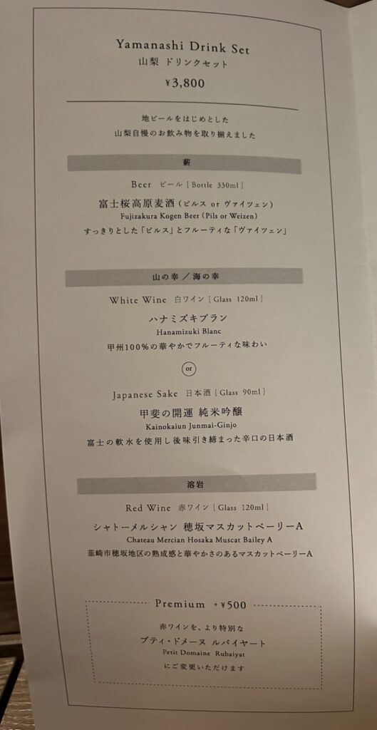 山梨の食材をゆっくり味わえる場所でした。