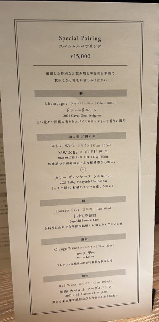 飲みものは、夫は日本酒ペアリングを、
