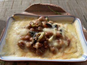 黒毛和牛と納豆を使った豆腐グラタン。