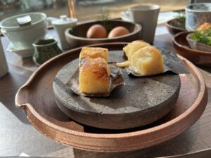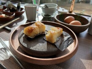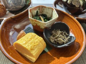 朝食の定番、出汁巻き玉子と梅ちりめん山椒、