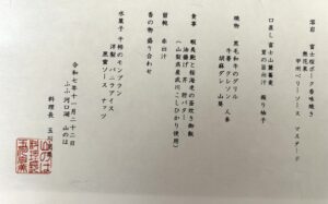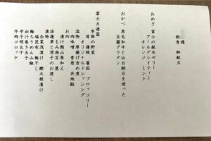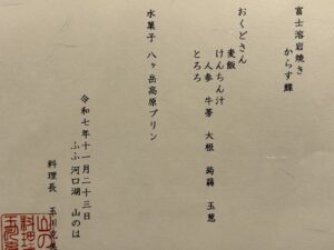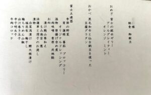 ふふ河口湖の夕食のお献立です。