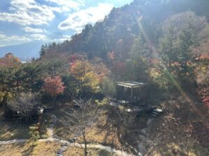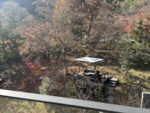 紅葉が残るふふ河口湖の森。