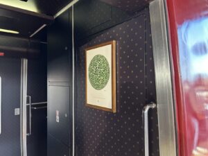 途中、アテンダントが記念スタンプを持って