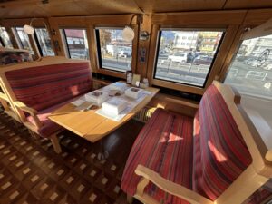- 車内有料ドリンク、おつまみ、おみやげなどの支払いは、現金のみ