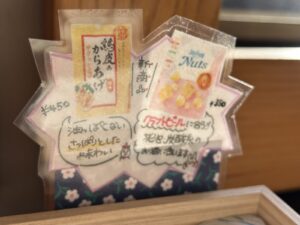 おつまみや甘いものも販売しています。