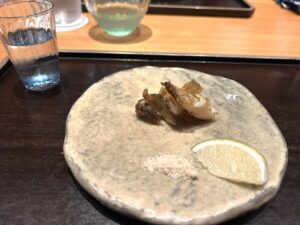 来ました、ガンツウ(イシガニ)の味噌汁。