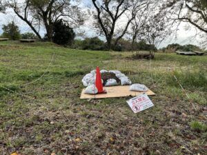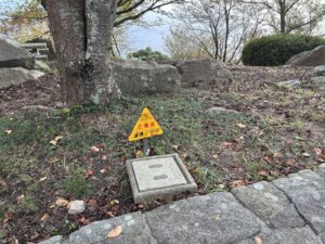 途中、遺跡発掘調査中の囲いがありました。