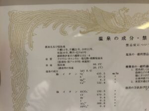 温泉の成分表もいちおう載せておきます。